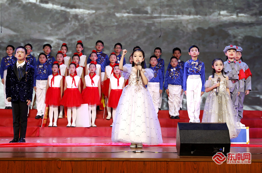 第二实验小学教育集团和星校区诵读《有一首歌》。东南网记者 陈培源 摄 东南网11月21日讯(本网记者 陈培源 通讯员 陈燕燕)近日,2022年泉州市中小学“学习宣传党的二十大精神”红色经典诵读活动(泉港专场)在福师大泉港实验中学报告厅举行。 活动现场,泉港区辖区内13所学校带来精彩演出,朗诵者们饱含深情、富有感染力的朗诵,赢得了现场观众阵阵热烈的掌声。《携手共进 谱写华章》《红船,从南湖起航》《百年风华,盛世如愿》《美丽中国》等经典诵读表演,高潮迭起,无不呈现着阅读带来的力量,更展现了“新时代好少年”新风貌、新姿态。 据了解,此次红色经典诵读活动围绕歌颂党、歌颂祖国、歌颂中国特色社会主义,精选了一批当代红色名篇佳作、经典爱国诗文等作为诵读篇目,通过组织校园晨读、朗诵会、读书会、集中展演等,引导未成年人听党话、感党恩、跟党走。 9月份以来,泉州市委文明办联合市教育局组织全市各中小学、幼儿园开展红色经典诵读竞赛、展演交流等系列活动,引导广大未成年学生践行社会主义核心价值观,传承红色基因,提升道德情操,增进家国情怀。 本次活动由泉州市委文明办、泉州市教育局,泉港区文明委、泉港区新时代文明实践中心主办,泉港区委文明办、泉港区教育局、泉港区复兴少年宫承办,福师大泉港实验中学协办。