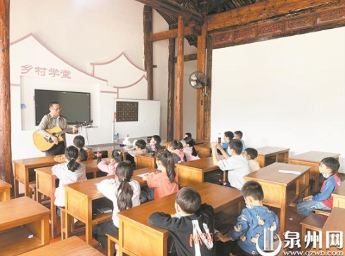 孩子们在上音乐课 “池塘边的榕树上,知了在声声叫着夏天;操场边的秋千上,只有那蝴蝶停在上面……”26日上午,悠扬的吉他旋律伴着清脆稚嫩的歌声在安溪县虎邱镇湖西村古厝里回荡。据了解,这是湖西村乡村学堂新开设的公益音乐课。今年7月起,村里的古大厝改建为乡村学堂,并邀请老师、志愿者、返乡大学生等公益人士,为周边孩子免费开设各类兴趣课程。 课程多样化 孩子兴趣大 26日10时许,记者来到了位于湖西村党群服务中心右侧的乡村学堂。走进古大厝,耳边便传来阵阵悠扬的歌声。古厝的大厅,配有课桌、讲台、白板等教学设备,20多个孩子正上着音乐课。老师在台上用吉他弹奏,学生在台下跟着旋律哼唱。 “我很喜欢来上课,这两周,我学会了唱罗大佑的《童年》,还交了很多朋友。”就读四年级的小欣来自紧邻湖西村的芳亭村。小欣喜欢唱歌,她开心地告诉记者,最近老师夸她唱歌比之前进步了。来自湖西村的小坤就读六年级,他经常把课上学到的歌曲唱给父母听。“老师还会教我们学习一些音乐知识,带我们玩吉他,可有意思了。”小坤兴奋地说。 湖西村党支部副书记林清金告诉记者,湖西村乡村学堂又名龙踪书院,于今年7月建成。学堂成立以来,在暑期及平时节假日,会为村里与周边村庄的孩子免费开设书法课、绘画课等兴趣课程。村里每周会在群里提前公布当周的课程内容,孩子可根据自己的兴趣选择。古大厝里还有“儿童之家”“科普室”“家风家训馆”等学习场所。不仅如此,村里会不定期地在古大厝里组织布袋木偶戏表演,让孩子感受非遗文化的魅力。 |