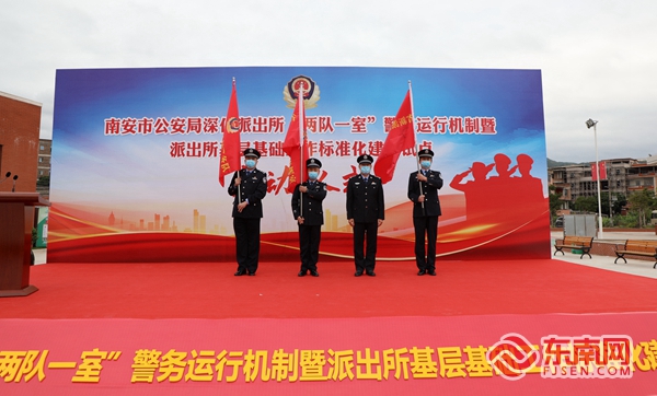 启动仪式主会场。南安市公安局 供图 东南网12月1日讯(本网记者 陈培源 通讯员 潘秋菊 程冬梅)12月1日上午,南安市公安局在省新镇省身村“党建+”邻里中心举行深化派出所“两队一室”警务运行机制暨派出所基层基础工作标准化建设试点启动仪式,溪美、柳城、美林、仑苍四个分会场同步启动。南安市委常委、政法委书记、常务副市长吴振强,副市长、公安局长曾伟军出席主会场仪式,仪式由南安市公安局政委王晓东主持。 仪式上,全国人大代表、公安部特邀监督员、省新镇省身村党委书记吴金笔首先发表致辞,省新镇党委书记李文敏为志愿者服务队分队长颁发聘书,副市长、公安局长曾伟军为省新派出所“两队一室”授旗,省新派出所社区民警代表作表态发言。 吴振强指出,大抓基层、大打基础,深化派出所“两队一室”警务运行机制,推进派出所基层基础工作标准化建设是大势所趋、群众所盼、工作所需。 吴振强强调,派出所要下沉警力,建立群防群治队伍,强大基层工作力量;要做强支援保障机制,加快推进警务网格与社区网格融合发展,通过全面整合要素资源、归口管理任务、规范管控流程,让派出所回归主防主业、回归基层基础。 吴振强要求,各试点单位要围绕“基础牢、出事少、治安好、党和人民满意”这一目标,把派出所建设成化解矛盾的第一防线、固本强基的第一主体、规范执法第一关口、服务群众的第一平台,打造一批可借鉴、可复制、可推广的“南安样板”,示范引领基层基础工作夯基垒石、反哺实战,更好守护南安平安稳定、经济高质量发展、群众安居安康。 |
