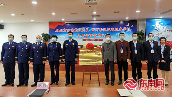 揭牌仪式现场。东南网记者 陈诗婷 摄 东南网12月16日讯(本网记者 陈诗婷)政校合作,共谋发展。12月16日,泉州市消防救援支队与泉州市南方科技职业技术学校举行共建合作签约暨“火焰蓝”人才孵化基地揭牌仪式。 泉州市南方科技职业技术学校,是一所集学历教育、职业培训、科技服务为一体的全日制综合性中等职业技术学校。2022年,该校首届消防工程技术专业招生65人,填补了泉州市消防类学历教育的空白,丰富了泉州市技工学校的专业类。学校积极探索“学历+培训+服务”的产教融合路径,培养一批从事消防安全管理以及消防设备安装、使用、检测、维护的中级技能人才,把“火焰蓝”人才孵化基地打造成为区域技术技能型人才育训基地、服务区域经济社会发展特色基地。 “‘火焰蓝’人才孵化基地的成立,是学校推进‘政企校’协同育人、建设特色鲜明的技工学校进程中的一项重要举措。”泉州市南方科技职业技术学校执行董事赖晓东表示,双方将以此次合作协议签约为契机,推动教育资源和社会资源共建共享,进一步拓展深挖合作范围,助力泉州消防人才队伍建设,为全市指战员搭建职业技能教育平台的创新举措。 “消防救援的职业前景十分光明,泉州消防平台广阔、大有可为。”泉州市消防救援支队政治部主任张柳霞欢迎有志向的学生学好专业知识、练就专业本领,积极投身泉州消防救援事业,在服务泉州经济社会发展、保护人民生命财产安全中谱写青春最美华章。 张柳霞表示,支队将与泉州市南方科技职业技术学校密切合作,依托双方优势,整合双方资源,共建消防人才培育和学生实习实践机制,把“‘火焰蓝’人才孵化基地”打造成为区域技术技能型人才育训基地、服务区域经济社会发展特色基地,共同推进泉州市消防救援事业改革发展,为海丝泉州高质量发展建设作出新的更大贡献。 |