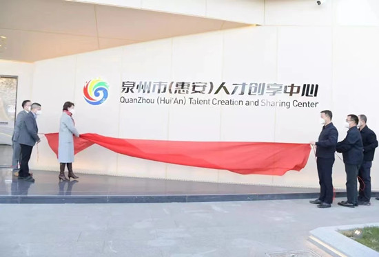 泉州市委常委、组织部部长卢秀萍,市委组织部副部长杨德才,市人社局副局长郑强,县委书记王春雷,县委常委、组织部部长洪亚清,中国工艺美术大师吴德强共同为泉州市(惠安)人才创享中心揭牌。