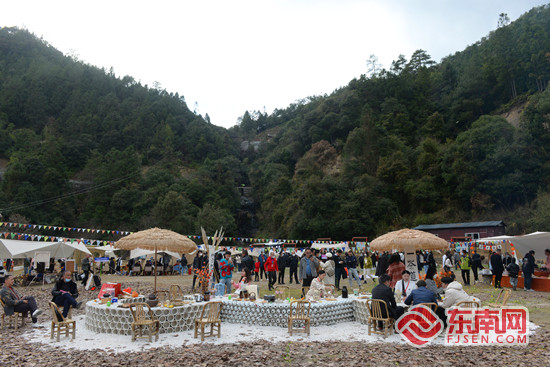 围炉煮茶场景创意大赛现场。吴有森 摄 东南网1月5日讯 今日,世界瓷都围炉煮茶文化生活节在德化县国宝云龙谷景区举办,吸引众多游客前来打卡体验。 约上三五好友在柿子树林下围桌而坐,一边喝着刚烧开的热茶,吃着烤得暖乎乎的美食,一边享受微风轻拂、暖阳和煦,欣赏着周边优美景色,也是一种别样的体验。 本次活动同时开展围炉煮茶场景创意大赛,以线上+线下的方式进行。在围炉煮茶场景创意大赛现场,活动共征集了来自各旅游景区、陶瓷生产企业、网络大v、职业设计师、个人爱好者的30余件参赛作品。各参赛选手架起炭炉、摆上茶壶,再添置仿古桌椅、书法水墨、油伞、折扇、精致糕点等元素点缀,新中式风的围炉煮茶氛围瞬间都被拉满。极具美感与创意的场景设计作品吸引了众多嘉宾前往互动体验。 |