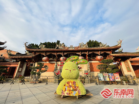 伫立在天后宫广场前的蟳埔簪花兔,让传统历史与新潮创意碰撞出不一样的火花。泉州文旅局 供图