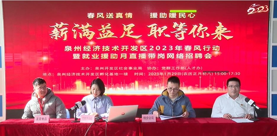 泉州开发区2023年直播带岗网络招聘会上,多家企业走进直播间,推介招聘岗位。(直播截图) 东南网2月2日讯(本网记者 谢玉妹)人勤春来早,奋进正当时。春节假期刚过,泉州开发区便开启了“抢人”模式,线上线下招聘齐发力,助力区内企业实现新春“开门红”。 “我们主要招聘一线操作人员,除了保底工资还有技术补贴和工龄补贴,企业员工的食宿条件也都很好……”在1月29日举行的泉州开发区2023年直播带岗网络招聘会中,九牧王、特步、友臣食品等6家企业走进直播间,分别进行岗位招聘的推介,并针对求职者关心的岗位需求、薪资待遇、发展前景等问题进行详细解答。通过视频直播,各个企业的用工环境、食宿条件、企业氛围一目了然。 现场,泉州开发区社会事业局、党群工作部(人才办)工作人员,还化身主播,推介开发区的就业创业环境和招工引才政策。这是泉州开发区首次尝试以视频直播的形式举行招聘会。九牧王股份有限公司招聘培训副经理丁莹认为,“直播带岗”网络招聘形式非常新颖,可以让求职者更直接了解到我们企业的情况,招工引才更加精准。 作为民企云集的泉州产业高地,泉州开发区共有各类市场主体13403家,其中规上工业企业117家。为充分保障节后企业用工需求,泉州开发区出台系列暖心引才稳岗“政策礼包”,并提前策划招工活动,帮助企业搭建好平台。 除了线上直播形式,开发区还在区内孵化基地广场举行了为期9天的线下招聘会。招聘会中,近百家企业为不同求职者提供92种岗位类型,涵盖纺织鞋服、电子信息、机械制造、医药食品等多个产业,首日吸引了千余名求职者到场咨询,初步达成就业意向300多人。此外,泉州开发区社会事业局还依托邮政网络系统,将区内企业的用工需求推送到各地网点,“火力全开”保障企业用工需求。 下一步,泉州开发区将继续推动各个渠道的引才稳岗举措落到实处、见到实效,实实在在帮助区内企业缓解用工难题,让企业心无旁骛“搞事业”“拼发展”! |