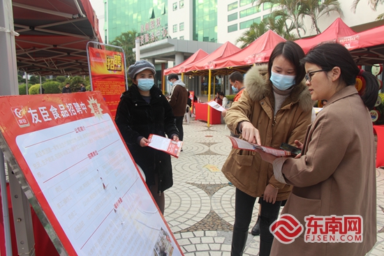 图为线下招聘会现场,企业人力专员正在向求职者介绍薪资待遇。东南网记者 谢玉妹 摄