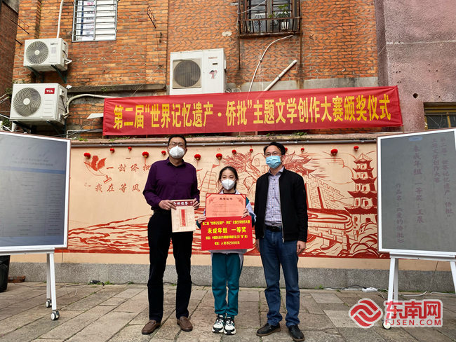 颁奖仪式。东南网记者 黄雨昕 摄 东南网2月5日讯(本网记者 黄雨昕)日前,第二届“世界记忆遗产·侨批”主题文学创作大赛颁奖仪式在泉州侨批馆举行。 本次文学创作大赛得到海内外各界人士的积极参与,共征集到来自全球各地的诗歌、散文、小说来稿共638件。经专家评审组严格评审,层层筛选,共评出成人组一等奖1件,二等奖2件,三等奖3件,优秀奖9件;未成年组一等奖1件,二等奖2件,三等奖3件,优秀奖10件;海外组一等奖1件,二等奖2件,三等奖3件,优秀奖10件。为弘扬侨批文化,47篇获奖作品将永久收藏泉州市档案馆专题档案库。 “能够获得这个奖项我很开心,这是对我莫大的鼓励,接下来我还会继续创作侨批相关的文学作品,为侨批事业贡献自己微薄的一份力量。”未成年组一等奖作品获得者王晨说道。 当天,侨批馆还举行了“纸笔抒情·聚暖福批”侨批主题元宵系列活动启动仪式,活动内容丰富多样,包括“聚暖福批”主题侨批展、“纸笔抒情”批信书写、“亲情福灯”DIY制作、“元宵福礼”赠送等,该系列活动将持续至2月15日。 |