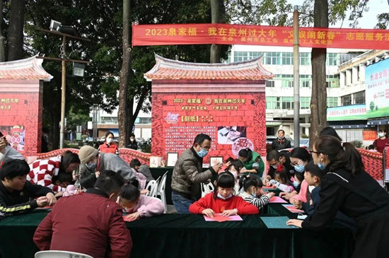非遗体验 观看表演后,通过线上抢报成功的职工及其子女分组参与非遗文化体验,感受世遗泉州魅力,传承优秀传统文化。 福船、老君岩、燕尾脊、福兔......一张张富有泉州特色和新春元素的精美刻纸,在亲子互动默契配合下逐渐呈现,为大家送上暖暖的节日祝福。