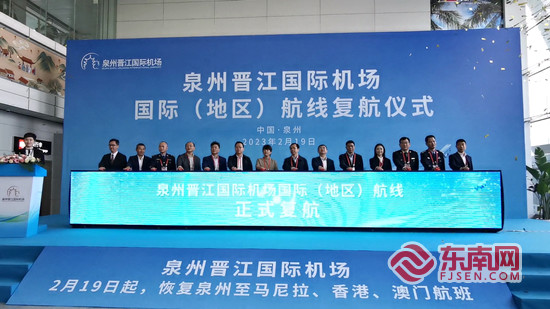 东南网2月19日讯(本网记者陈诗婷 通讯员 许诗颖 黄晓静 姚志炜 毛室竣)今日,随着从泉州飞往菲律宾马尼拉的厦航817航班顺利起飞,暂停了570天的晋江机场国际(地区)航线今起正式复航。 记者获悉,当日,泉州晋江国际机场共复航香港、澳门、马尼拉3条国际及地区客运航线各1班,出入境旅客量共达300余人次。泉州晋江国际机场党委委员、副总经理陈火斌接受采访时介绍,机场接下来将加密香港、澳门、马尼拉航班,恢复吉隆坡航班。5月份起陆续恢复曼谷、芽庄、克拉克、新加坡等国际航班,并根据政策调整情况,及时推进恢复台北航班。