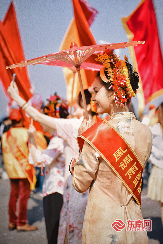 美丽鲜艳的簪花围,像个“移动花园”。东南网记者 林婕 摄