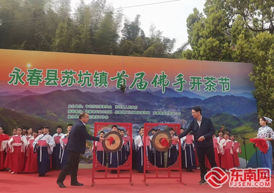 永春苏坑镇首届佛手开茶节仪式现场。东南网记者 施远圻 摄 东南网3月21日讯(本网记者 施远圻 通讯员 康庆平)3月21日上午,正值春分节令之际,泉州市永春县苏坑镇举行首届佛手开茶节,助推永春县茶产业高质量发展。 永春县种植佛手茶已有300多年的历史,永春佛手茶树属大叶型灌木,因其树势开展,叶形酷似佛手柑,因此得名“佛手”。永春佛手茶作为中国国家地理标志产品,被授予 “中国著名品牌”“中国申奥第一茶”等荣誉称号,入选农业部名优农产品名录、全国名特优新农产品目录。 开茶节仪式上,举行了诵读《茶经》、鸣锣开茶、醒狮采青等活动;苏坑镇政府还分别与福建农林大学、永春县农村信用合作联社签订相关合作协议。 |