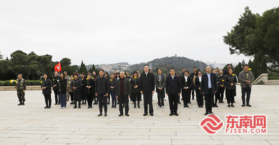 全体人员向烈士纪念碑献花。东南网记者 陈诗婷 摄 |