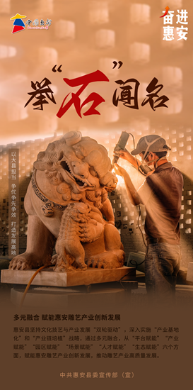 一张小海报 打开美丽新“视”界 近年来,随着全媒体时代的到来,形式多样的创新性宣传手法,是引发受众共情力的趋势。 “看见惠安”海报项目,以“此间惠安”“奋进惠安”“福见·惠安”“‘泉’有福 惠安‘狮’”“古城春来”“古城古韵香”“穿在身上的惠安”“舌尖上的惠安”等为主题,多视角、全方位展现惠安,将“看见惠安”海报项目打造成具有惠安特点的宣传精品、品牌。 “海报相比其他的传播形式,它更简单直接,易于在朋友圈转发传播,传播的速度更快范围更广,让惠安能被更多人看见。”惠安县委宣传部副部长张超萍介绍,以海报的形式进行传播表达,从这种介质的载体中融入设计元素、融入有深度的主题和注解,使之变得新颖又极具内涵。 120多幅海报的背后,是一个团队为此付出的诸多努力。据了解,海报策划小组成立后,提前对重要节日、县委县政府中心工作及当下热点话题等进行头脑风暴,根据新闻主题进行多轮创意碰撞。 一年多来,海报策划小组深耕“新闻海报”的创作,在主题策划上精准发力,在图片形式上深耕整合,在设计技术上创新出彩,一步一个脚印,极大丰富了“互联网+”宣教形式,用讲好惠安故事、传播惠安声音的方式,让百姓在全媒体传播时代里看见惠安的“小美好”。 120多幅精美作品 藏着惠安的千年故事 海报制作小组成员小吴介绍,“看见惠安”系列海报中,从始至终都追求文案的内涵和图片的美感,从而做到一眼惊艳读者。 海报文案的创作主要结合当下热点,例如惠安县认真贯彻落实“深学争优、敢为争先、实干争效”的行动要求,分别从产业发展、乡村振兴及文化旅游主题,创作出三幅具有代表性的精品海报,如《举“石”闻名》《富民兴村》《文化出圈》。