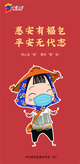 众所周知,早在1600多年前的晋朝,惠安石雕作为永久性的艺术已被应用。《举“石”闻名》这幅海报中,石雕工人正在打磨一尊憨态可掬的石狮子,创作团队用谐音的方式,表达出这幅海报的内涵,也体现了惠安以大县担当,争优争先争效,打造产业发展高地。 在“福见·惠安”主题海报中,小小惠安女穿戴着惠女服饰,手指着门上的大红“福”字,画面虽然简洁,但却包含着诸多内涵。让人一眼看见走过千年的惠女服饰,传达“福”文化以及收获满满的祝福。