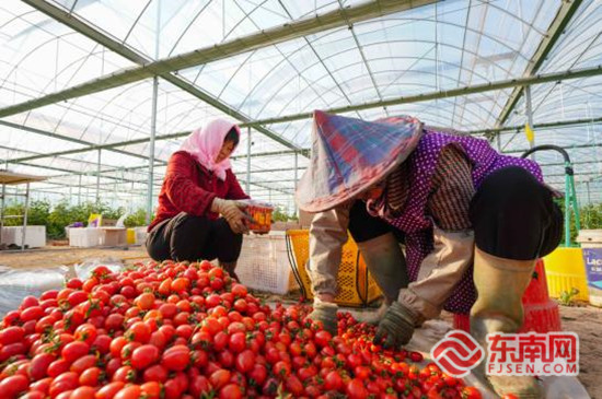 工人正在分拣圣女果。 家兴农场 供图 东南网3月30日报道(通讯员 何阳)阳春三月好风光,蔚蓝的天空下,惠安县辋川镇的下江村,有这么一处家兴农场,远望如一幅由绿色、白色、黄色、青色勾勒的美丽图画,走入又见处处绿意盎然,沉甸甸的圣女果挂满了枝头。连日来,福建省机械科学研究院智能技术团队走进农场进行农业智能装备示范应用的设备及设施的安装与调试。 国家级台湾农民创业园区家兴农场负责人、福建康顺旺生态农业有限公司郑培忠介绍道:“本次培育的圣女果植株是2022年11月份从韩国引进的新品种,首次应用了福建省机械科学研究院的研发成果,包括二氧化碳气肥智能增施和物联网云平台智能环控技术,可提质增效;此外,还通过控氮聚糖和绿色防控以及绿肥深酶等技术实现了对盐碱地土壤的改善”。 项目负责人、高级工程师何惠彬也说道:“二氧化碳气肥智能增施及环控技术是基于阿里云平台,运行可靠、运维成本低”。 据介绍,经过10多年的发展,家兴农场获得了社会各界的多方面认可,目前是省级市级家庭农场示范场,获批省级现代蔬菜产业园、“滨海盐碱地特色种养结合型生态循环农业”泉州市专家工作站、福建省农业科学院科技示范基地、福建省机械科学研究院农业智能化装备应用示范基地、全国新型职业农民培训基地等平台资质。郑培忠本人也获得了泉州市五一劳动奖章、泉州市第五层次人才、泉州市优秀创业农民工、泉州市劳动模范等荣誉称号。 “看着这些沉甸甸的圣女果,我们的心是甜的,这也代表着更多的动力和责任。”郑培忠说,家兴人将不忘初心、砥砺前行,以农业智能科技带动产业振兴,努力提高家乡农业发展和农民生活水平,为乡村振兴添砖加瓦。