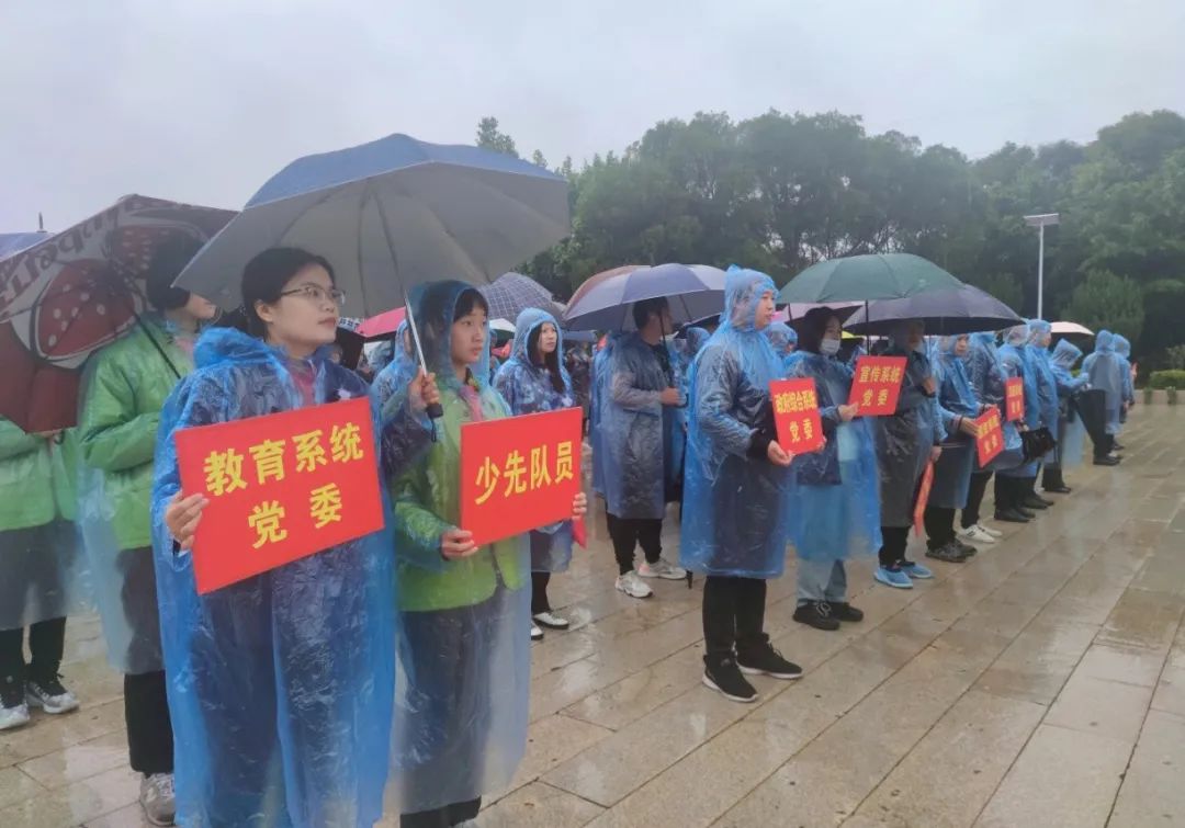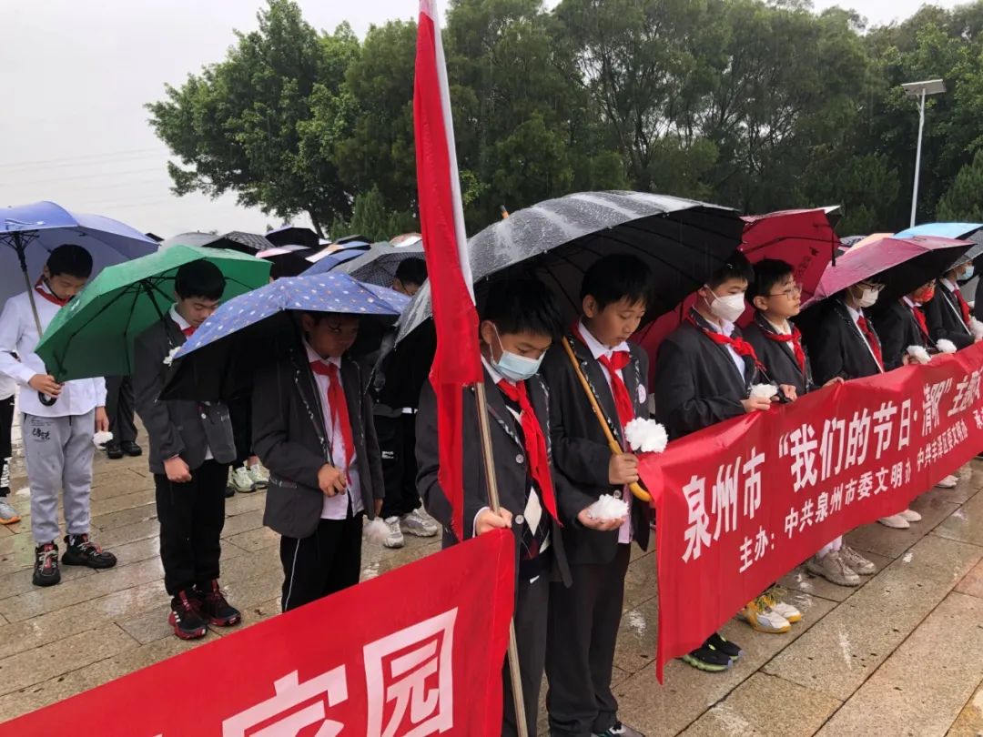 冒雨徒步 少先队员敬献小白花 丰泽区第五中学小学在校师生冒着风雨,徒步来到泉州市革命烈士陵园祭扫英烈。师生排着整齐的队伍,一起瞻仰泉州市革命烈士纪念碑,共同缅怀先辈的光辉事迹。肃立、默哀、鞠躬、致敬……雨滴打湿了校服,雨水模糊了双眼,但对英雄的崇敬之情油然而生。 联合祭扫 党员干部齐缅怀