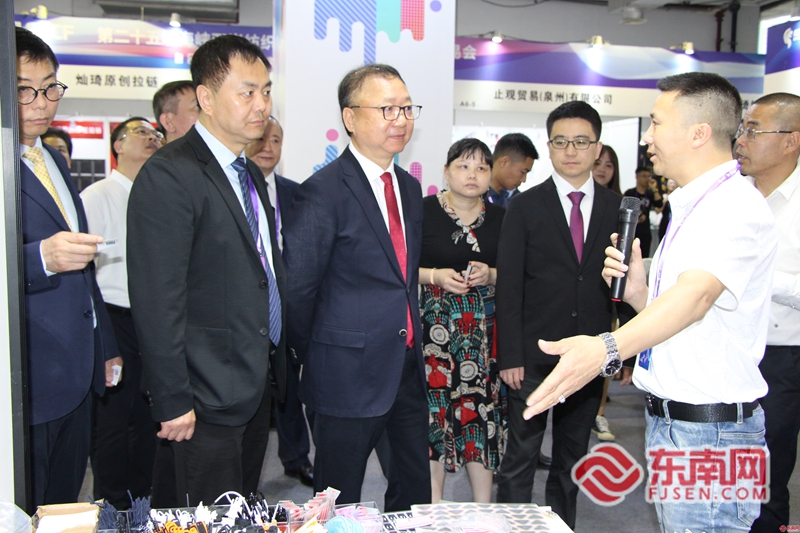 石狮本土辅料企业正在向参加展会的领导嘉宾介绍自主研发的辅料。东南网记者 谢玉妹 摄