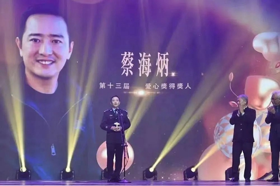 在闽南沿海小城泉州石狮,有位被称为“狮城苍狼”的警官,他从警20多年,参与侦破了2800多起刑事案件,他研案破案的能力和雷厉风行的作风让违法犯罪分子无所遁形。惩恶扬善的同时,他积极行善。在网络新时代,他是网络微博的大V客户,他“圈粉”无数。而让他“圈粉”无数的原因不是一般的网络流量,炒作博眼球,而是他几十年如一日,日日行善的广大善举。他从2011年开始每天最少捐出10元钱,发布友善类微博1万1千多条,联合善行团、天使之家等公益机构发起近百次“微公益”活动,带动2万多人参与助弱救残,募集善款1000多万元。 这位新时代传承红色革命精神、做人民生命安全“护航者”的人,就是2018年荣获第13届全球华人“爱心奖”的人民警察蔡海炳警官。