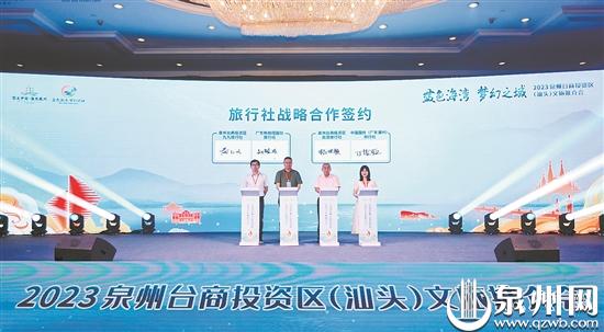 展示滨海风光、人文魅力、历史之韵—— 台商区文旅推介会在汕头举办 推介会举行多项签约活动,增强台商区文旅产业发展后劲。 东风渐劲,春色愈浓。“五一”假期前夕,由泉州市文化广电和旅游局、泉州台商投资区党工委、泉州台商投资区管委会指导,泉州台商投资区教育文体旅游局主办的“蓝色海湾 梦幻之域”2023泉州台商投资区(汕头)文旅推介会在广东省汕头市隆重举行,向汕头各界全方位展示台商区滨海特色文旅项目,带现场嘉宾领略台商区迷人的滨海风光、人文魅力、历史之韵。 挖掘资源禀赋 展示文旅魅力 “蓝色海湾 梦幻之域”2023泉州台商投资区(汕头)文旅推介会高朋满座。泉州市文化广电和旅游局、汕头市文化广电旅游体育局相关领导,台商区党工委委员黄晓东等参加活动。参加活动的还有台商区各乡镇及招商投资集团分管领导、汕头市文旅部门相关领导、旅行商、媒体记者朋友、旅游达人等120余人。 泉州八仙过海旅游度假区俄罗斯大马戏舞蹈拉开整场活动序幕,激情洋溢的表演让人目不转睛。大家纷纷拿出手机,记录下精彩瞬间。 推介会上,台商区党工委委员黄晓东发表欢迎致辞,向与会嘉宾介绍了海丝新城泉州台商投资区的独特魅力。台商区作为泉州全域旅游格局中非常重要的一环,生态资源禀赋优越,依山傍海、沿江拥湖。黄晓东全方位、多角度诠释了“蓝色海湾 梦幻之域”这一活动主题,盛情邀请广大市民游客走进泉州台商投资区,共赏山海神韵,共谋文旅未来,共享发展盛宴。 汕头市文化广电旅游体育局三级调研员杨建雄表示,此次推介会是两地文化旅游交流合作的重要机会,也是两地友谊的有力见证,将推动两地进一步深化合作、优势互补、互惠共赢。 推介会上,台商区招商投资集团向与会嘉宾介绍了台商区的文旅资源并解读最新文旅政策,和与会嘉宾共同领略台商区的多元文化和文旅魅力;台商区文旅推介团向来宾推介八仙过海旅游度假区、盘扣三湾文旅、雕艺文化园、浮石营地等滨海特色文旅项目,发出畅游泉州台商投资区的邀请。 活动现场设置了游戏有奖互动环节,为参会嘉宾送上泉州台商投资区旅游景区门票和旅游商品等奖品,将现场气氛推向高潮。提线木偶表演丝丝入扣、妙趣横生,让观众近距离感受到非遗技艺的独特魅力。 泉州八仙过海旅游有限公司代表与汕头市5家旅行社企业签署战略合作签约仪式,以此活动为契机,为两地文旅企业搭建起交流与合作的良好平台,推动台商投资区旅游业发展;除了景区和旅行社签约外,泉州台商区旅行社与汕头旅行社还进行战略合作签约,推动双方实现优势互补、客源互济、资源共享、互利共赢,带动两地文旅产业高质量发展。 推介会现场设置的文旅资源展示区,展示了台商区洛阳桥、海丝艺术公园、八仙过海旅游度假区、玉沙湾等文旅微景观;非遗展示区通过漆线雕、碧兰影雕、李海聪文创产品、九龙木雕、提线木偶等丰富的体验形式,为现场嘉宾带来一场亮点十足、精彩纷呈的文旅推介,让大家零距离感受台商区文旅的盛情邀请。 |