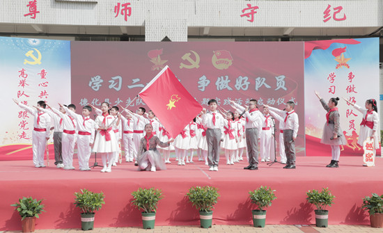 少先队员表演精彩节目。刘秀钏 林婉华 供图 活动由“榜样引领我成长”“党的教导记在心”“争做强国好少年”等三个篇章组成。由浔中中心小学少先队辅导员和少先队员创作编排的师生共舞《青春,向上》、南音表演《南音生南国》、微队课《党是太阳我是花》、朗诵《请党放心 强国有我》等节目精彩上演。 当天,领导嘉宾还为2022年度获得福建省优秀少先队集体和个人、全国优秀少先队辅导员颁奖。 此次活动,进一步强化了少年儿童对党、团、队组织的认知与热爱,激发了少年儿童朴素的爱国主义情感,引导少年儿童牢记历史使命,秉承光荣传统,高举红色旗帜,紧握红色接力棒,做红色基因的传承者,奋进新征程。