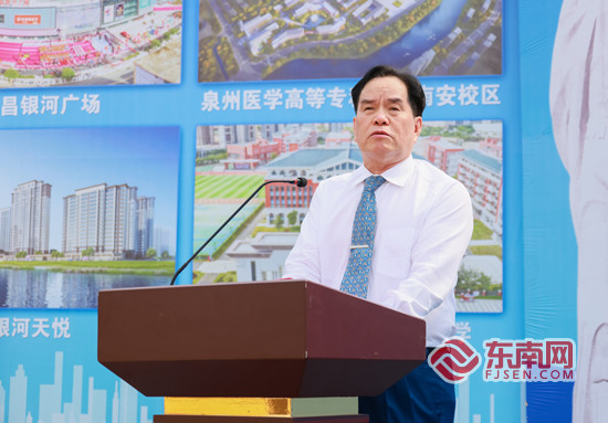 南安市慈善总会会长、厦门源昌集团董事长侯昌财致辞。李峰溪 供图 南安市慈善总会会长、厦门源昌集团董事长侯昌财在致辞中表示,本次启动仪式在医高专项目现场举行,源昌集团备受鼓舞、斗志昂扬,将继续弘扬“企业长青、慈善永久”的慈善文化,加快完善“一市三城”特别是北部新城功能配套,推进高等职业教育高质量发展,培养一批“情、德、善、孝”品格高尚、健康有为的人,为全面建设社会主义现代化国家南安篇章贡献青春智慧和先锋力量。 泉州市重点项目建设标兵、南安市圣元环保电力有限公司副总经理杨煌坤代表重点项目劳动竞赛先进单位和先进个人发言。他表示,将以本次启动会为契机,按照行动方案要求,提高争优、争先、争效意识,进一步强信心、鼓干劲、提精神,积极投身行动,主动担当,在新时代新征程中奋勇争先、再立新功。 当天,泉州市发改委重点办主任黄乐奇为重点项目劳动竞赛先进集体、先进个人授予五一“工人先锋号”旗帜;泉州团市委副书记郭莎娜为重点项目青年突击队代表队伍授予青年突击队队旗。 项目建设是高质量发展的基石。据了解,今年以来,南安以“开局即决战,起跑即冲刺”的姿态,全力拼经济、拼发展,在第一季度累计新开工项目100个,策划生成项目111个,达成“双百”战绩。本次活动旨在持续激发全市重点项目拼的劲头、抢的意识和争的实效,充分发挥重大项目的投资引领作用,全方位推动全市经济实现质的有效提升和量的合理增长。 |