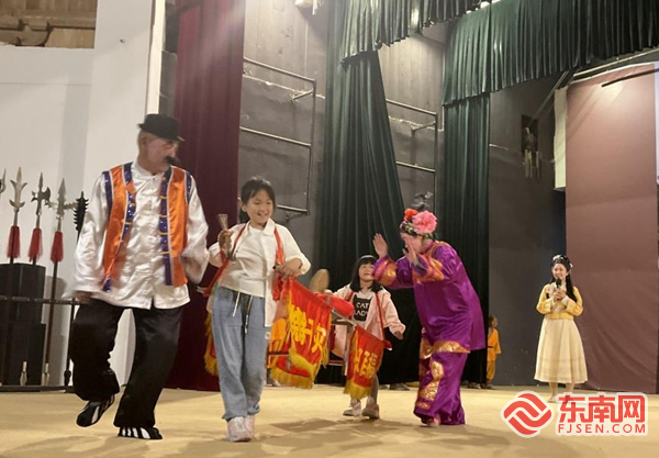 演出间隙,不少小朋友到台上扮演“火鼎公、火鼎婆”,憨态可掬。泉州少林寺 供图 |