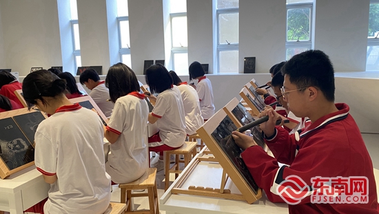 惠安一中学子学习影雕技艺。东南网记者 林杰 摄 |