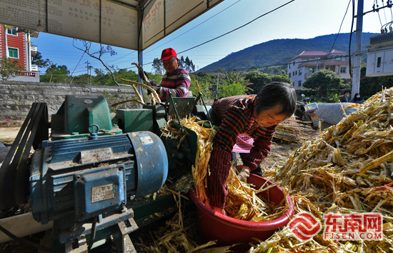 制糖师傅正在榨取甘蔗汁。洪坤泽 摄 东南网5月4日讯(通讯员 洪坤泽 本网记者 黄雨昕)近日,走进泉港区涂岭镇秀溪村红糖制作工坊,糖屋门口成捆的甘蔗映入眼帘。伴随着“轰轰”的机器声,榨汁机大口大口地“吞咽”着甘蔗,青翠色的甘蔗汁缓缓流进屋里的蓄汁池,在经过滤、沉淀等环节后,被注入灶台边的第一口大锅。 熬制红糖的过程,用热火朝天来形容一点都不为过,只见灶台上五口大锅一字排列,灶膛内燃着熊熊大火,嗤嗤地炙烤着锅底,制作现场白雾氤氲,锅中的甘蔗汁翻滚沸腾着,空气中飘散着土法红糖的清香味。 “为了做出最正宗的味道,我们坚持采用传统工艺熬制,柴火烘烤、连环锅熬汁,这些都是传承百年的老手艺。”熬糖师傅柯玉春介绍说。 对于连环锅熬制法来说,每一口大锅都是一道工序。第一口大锅里的甘蔗汁煮沸后,要除去糖汁中的泡沫和杂质,再将糖汁舀入第二口锅,不断搅拌让水分慢慢蒸发掉。随着时间的缓慢流逝,糖汁的浓度逐渐增高,当三口大锅熬成半锅的时候,浓度就差不多了。在熬制到第五道工序的时候,糖汁已经熬成了黏稠状态,空气中弥漫起浓浓的红糖味,这个时候就到了最关键的一步——试糖。这个步骤最考验师傅的手艺和经验,只见熬糖师傅先用凉水把手指漫湿,然后迅速蘸一下锅面上的糖汁再放入冷水中,待手指上的糖汁冷却后揉一下,如果能揉出声响,就表明稠糖汁可以起锅。糖浆起锅后便是倒糖浆,让糖浆凝固。将刚起锅的糖浆舀入模具中,师傅拿着糖刷迅速将糖浆刮匀,防止糖浆凝固不成形。 此时,早早等在一旁的买糖人便迫不及待地品尝起来,购买新鲜出炉的红糖块。“小时候每年过年都要吃这个,现在再吃味道还是跟儿时一样。”早上刚刚返乡的陈女士听到红糖制作的消息立马赶来品尝,回忆儿时的甜味。 一块红糖,从榨汁到成形,将近一个多小时,期间承载着老师傅们对红糖传统工艺的深厚情谊。 说起秀溪甘蔗和制糖工艺,传承至今已有近百年的历史。据秀溪村党支部书记、村委会主任王志成介绍,解放前,当时的秀溪还叫小溪,为了发展生产,有村民自仙游枫亭引进甘蔗种植和制糖技术,自此秀溪与糖有了不解之缘。得益于秀溪优秀的地理气候,经过对技术的不断改造,秀溪培育种植的甘蔗质量越来越高,熬制出来的红糖品质也越来越好。1957年,时任惠安县县长的马三聘到秀溪村调研参观红糖制作,对秀溪红糖给予了高度赞扬,称其为惠安县最好的红糖。 红糖虽好,但由于种种原因,村里的糖坊一度停止经营。近年来,随着当地党委、政府加快推进“文旅兴镇”行动,连续举办八届“秀溪枇杷节”,来村里休闲旅游的人越来越多。村党支部决定尽快复兴传统制糖工艺,将传统制糖文化和现代元素相结合,建成集制糖工艺展示、糖文化展览、文化墙为一体的“糖潮秀”文化广场,推出“秀溪红糖”“生姜红糖”等特色伴手礼,使百年老手艺得以重现。 “通过甘蔗种植、红糖制作,村里的闲置土地全部利用起来了,每年也会带动一百多人的劳动力转移、增收。现在的秀溪村成了旅游热点,很多游客过来游玩、赏花,顺便带一点红糖作为伴手礼,这让大家的日子过得越来越甜,越来越好。”秀溪村党支部书记、村委会主任王志成说。