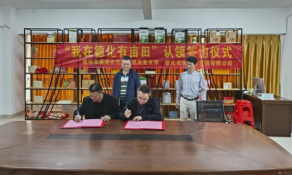 近日,市委史志研究室组织党员干部前往德化县水口镇坂里村,开展“我在乡间有亩田”主题党日活动暨“发挥史志优势 贡献史志智慧”专项行动。 在德化县水口镇,市委史志研究室机关党支部与德化县农优产业发展有限公司签订《“我在乡间有亩田”认领协议书》。根据认领协议,史志研究室共认领3亩耕地,认种期限为1年。 认领签约仪式结束后,党员干部前往坂里村参观中共福建省委坂里旧址,开展党史现场教育,并对陈列馆展陈内容及宣教形式提出建议。 下一步,市委史志研究室机关党支部将继续深入贯彻落实“深学争优、敢为争先、实干争效”行动部署,以开展“我在乡间有亩田”活动为抓手,拓展“党建+”邻里中心服务项目,通过赠送史志书籍、指导编修乡镇(村)志、评选“乡村记忆”传承人、传习所、传统民俗等方式,以实际行动助力乡村振兴。(综合科) |
