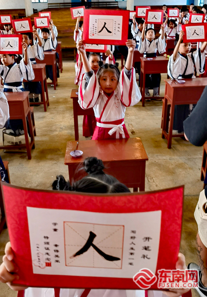 “开笔礼”是对少儿开始识字习礼的传统启蒙教育形式。林水坤 摄