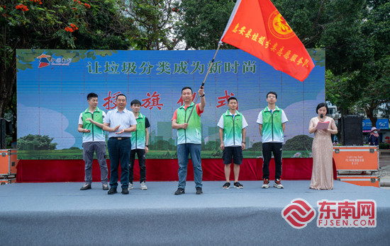 为惠安县垃圾分类志愿服务队授旗。惠安城管局供图