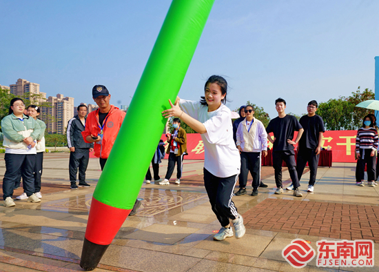趣味运动会上,青年职工参与铅笔翻滚互动项目。陈嘉纬 摄 |