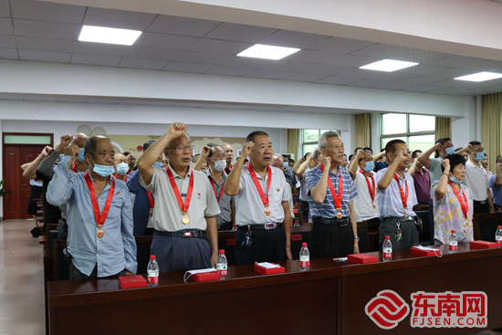 泉港区界山镇组织党龄50周年老党员重温入党誓词。 林晓兰 摄 |