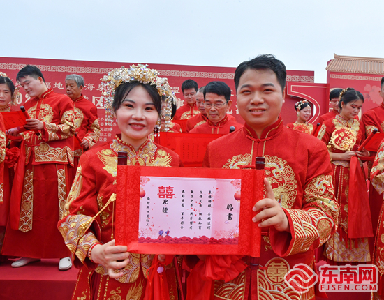 新郎新娘展示婚书。陈嘉纬 摄 |