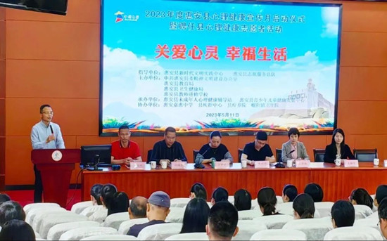 活动现场。 惠安文明办 供图 近日,由县委文明办、县教育局、县卫健局、县教师进修学校主办的2023年度惠安县心理健康宣传月活动启动仪式暨聘任县心理健康志愿者活动在嘉惠中学隆重举办。本次活动旨在进一步加强未成年人心理健康辅导工作,关爱未成年人心理健康成长,培育阳光心态,构建和谐健康社会。 惠安县委文明办副主任庄丽娟、县教育局副局长朱永贵,县教育局、县卫健局、县委文明办相关股室负责人,县未成年人心理健康辅站负责人,嘉惠中学校长庄进平以及各中小学分管校级领导和心理健康志愿者等共150多人参与了此次活动。本次活动有四项内容,包括心理健康宣传月启动仪式、参观嘉惠中学心理健康教育中心、现场心理主题活动和心理科普咨询宣传。 启动仪式暨志愿者聘任仪式在嘉惠中学学术报告厅举行,县教育局德育股负责人王鲤婷主持仪式。启动仪式上,嘉惠中学校长庄进平致欢迎词,县未成年人心理健康辅站负责人张文保介绍我县未成年人心理健康教育活动的开展情况。 县委文明办副主任庄丽娟宣读2022年度优秀心理健康志愿者的表彰决定。主席台就坐领导向获奖志愿者代表颁发证书。 县委文明办未成年人思想道德建设中心主任许福良宣读聘任县心理健康志愿者的通知,主席台就坐领导为心理健康志愿者代表颁发聘任证书。国家二级心理咨询师、嘉惠中学高珍老师代表2022年度优秀心理健康志愿者及2023年度新聘心理健康志愿者讲话。 |