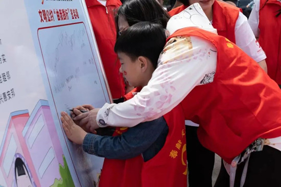 在文明公约“由我践行”签名墙上签名。 惠安文明办 供图
