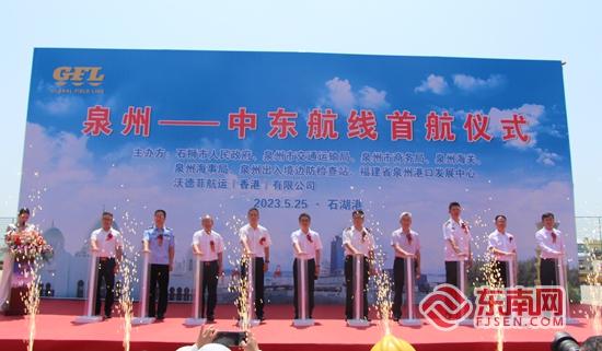 泉州—中东航线首航仪式。东南网记者 谢玉妹 摄 东南网5月25日讯(本网记者 谢玉妹 通讯员 黄鹏)继2022年9月首条泉州—俄罗斯远东航线开通后,5月25日,泉州再次迎来泉州—中东航线首航。 当天,装载机械设备、发电机组、石材、童鞋、卫浴等泉州本地货物的“星源”轮,从泉州港石狮石湖作业区启航前往中东迪拜杰贝阿里港。 中东是泉州及石狮对外贸易的传统市场,近年来,在“一带一路”倡议的引领带动下,石狮与中东乃至俄罗斯地区的贸易往来日趋紧密,2022年,石狮对中东国家出口额达28.6亿元,对俄罗斯出口额达5.1亿元。 此次开通的泉州—中东航线挂港顺序为青岛—宁波—泉州石湖—南沙—中东迪拜,并延伸至俄罗斯圣彼得堡,投入7艘集装箱船舶,提供双周班运营服务。泉州直达运抵迪拜航程约20天,运抵圣彼得堡航程约40天。值得一提的是,为了弘扬“海丝”精神,负责运输服务的沃德菲航运有限公司还以“海丝号”命名了一艘服务于该条航线的集装箱班轮。