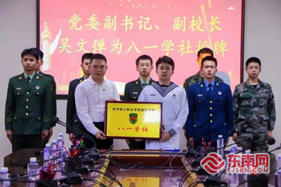 学校党委副书记、副校长吴文弹为八一学社授牌。学校供图 东南网5月29日讯(本网记者 陈诗婷 通讯员 庄杰)近日,一组关于宿舍内务的照片在朋友圈走红。据了解,为了带动全校学生努力营造温馨整洁的宿舍氛围,形成良好的学习风气,树立先进榜样,泉州轻工职业学院建筑学院整合大学生退役士兵资源,率先在全校做起了第一间“退役军人模范宿舍”。 “保家卫国,光荣退役”,宿舍门口的标牌十分吸睛。走进这间宿舍,整齐的“豆腐块”、统一的姓名牌、白净的床单、整齐摆放的生活用品,都书写着“模范”二字。 “当时在新兵连的时候刚学内务,叠豆腐块成为了我们的一大难题,因为部队里要求这个豆腐块不仅要四四方方,而且要有型,甚至长宽高都是有要求的。”曾服役于海军某部的林品全同学回忆道,训练结束回宿舍第一件事就是看看自己的被子有没有不合格而被扔掉,为了让被子能够挺拔有型,他咨询了很多老兵,一大早起来用水喷湿,用板凳压,有时候午睡都不敢拆被子起来盖,“这个豆腐块真的藏着我们太多的情感了”。 退伍后,他们被分在同一间宿舍,在学院的倡议下,他们决定把宿舍打造为军营化的宿舍,在点滴标准中重拾军旅情怀。 “我们曾经穿过军装,这种情怀就一直在,能够树立一个标杆,我觉得我们非常光荣!”林君杰同学说,建筑学院还将他们聘为学院“宿舍生活指导员”,力争每月开展一次宿舍内务公开观摩和指导活动。在学院的牵头下,他们与晋江市义务救援协会共同成立“晋江地震救援教育宣讲队”,主动承担“救护知识培训”“地震科普”“防诈骗宣传”等任务。 回到学校后,他们要重新融入校园生活,重新拾起学业是他们遇到的第一大难关。“我曾服役于武警部队,在部队我们也要学习大量的理论和技能,但是回来学校之后,感觉还是会吃不消,尤其是英语,不过部队教给我的坚韧精神,支持着我不断追赶大家。”李伟强同学说。 不仅如此,退伍回校后,他们还加入了建筑学院退役士兵社团——八一学社,在学校新生军训中担任教官,是同学们心目中的“硬核男神”。有着22年兵龄的汪锦发亲切地说:“在这群孩子面前,我算得上是老班长了,看到他们很亲切,我们学校每年都有一批孩子参军,也有一批孩子光荣退役,希望他们退伍不褪色,保持军人品质,发挥退役军人的先锋模范作用。” |