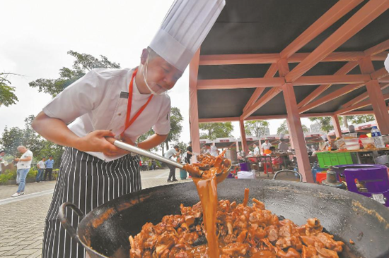 27日,泉州市泉港区2023年“桃岭之上 福寿绵长”文旅嘉年华暨第七届涂岭猪脚美食文化节举行。 本届活动突出“生态康养、文旅融合、乡村振兴”主题,举行了文艺汇演、烹饪大赛、农特展销等活动,并采取“线上直播+主播游园”形式,全方位、多角度推介泉港农特产品、涂岭猪脚美食、精品旅游线路,擦亮“山海泉港·中国长寿之乡”金招牌。 在涂岭猪脚烹饪比赛上,23家餐饮代表参加“传统技艺”“自选创意”两项比拼(如图)。经过专业评委品评、大众评委投票,最终评出金牌1名、银牌2名、铜牌3名、人气奖3名。 此外,现场还设置农特产品展销区。来自泉港本地、仙游园庄镇、洛江罗溪镇的30多个商家汇聚一堂,集中推介涂岭红茶、樟脚豆皮、涂岭米糕等名优农副产品,展示糖画、福船等非遗文创产品。 (福建日报记者 王敏霞 通讯员 林平山 林弘梫 文/图) |