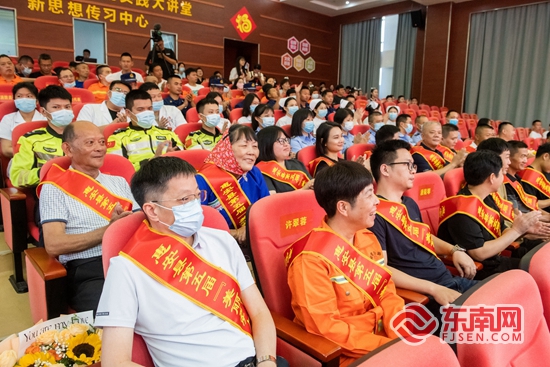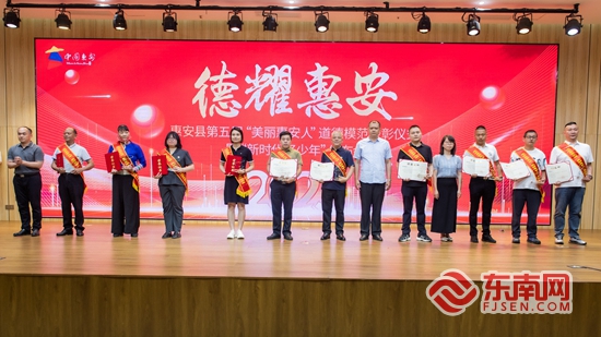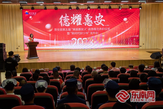 为道德模范颁发荣誉证书和奖杯。邓文祥 摄 “选树道德模范、身边好人、新时代好少年,让我们广大干部群众学有榜样、行有示范,这是一个社会进步的表现,一种文明风尚的体现。”全国优秀共产党员、福建省道德模范陈欠水说,身为道德模范,将继续争做崇德向善的践行者、文明风尚的维护者,传递新时代正能量。 “他们以平凡中的伟大、平常里的崇高,体现了社会进步的时代精神,他们的先进事迹温暖人心、给人力量,为全社会树立了榜样。”惠安县委常委、宣传部部长刘东升在致辞中表示,伟大时代呼唤伟大精神,崇高事业需要榜样引领。希望受到表彰的同志不忘初心、砥砺前行,希望广大青少年进一步坚定理想信念、培养高尚情操,希望广大干部群众以德为先、见贤思齐,希望各级各部门认真开展精神文明创建活动,以更加强烈的使命担当、更加饱满的精神状态,争优争先争效,为全面建设社会主义现代化国家惠安篇章作出新的、更大的贡献。 本次活动由惠安县文明委指导,惠安县委宣传部、惠安县委县直机关工委、惠安县委文明办、惠安县教育局、惠安县总工会、惠安团县委、惠安县妇联、惠安县关工委等部门联合举办。