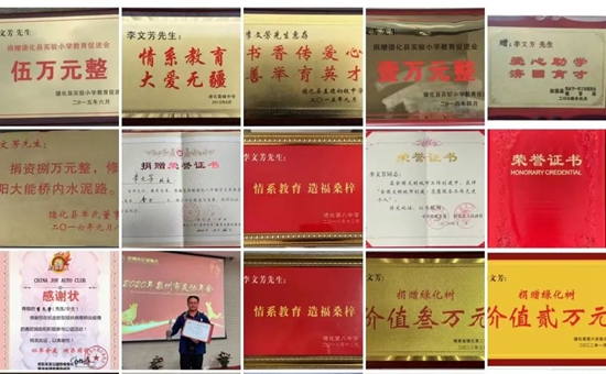 李文芳部分爱心证书 红心照耀 砥砺前行 上任伊始,李文芳立即对全村展开调查。随着资料查阅和走访的深入,李文芳发现了丁墘村文化资源非常丰富:培育了德化县70%的国家级、省级陶瓷大师的科技园;太平宫窑不远处,一株高达28.6米罗汉松;每年举办的“摆大龟”民俗独特……当李文芳提出“以文化振兴乡村,全力打造人文丁墘”时,多数人并不看好。尤其最初两年多的时间里,很多人表示怀疑,甚至各种讥讽、嘲笑,工作极难开展。 李文芳有了沮丧和困惑,也一度想放弃。可一想到村里众多文化宝贝还在沉睡,尤其是生产出宋代时期最白、最薄、最大器型的太平宫窑还埋在垃圾堆里,心就不甘。因为德化的历史、文化、经济都与陶瓷息息相关,而古窑遗产就是陶瓷最核心的魂。每当上班的路上途经豹尾堂,似有无形的鞭子打在他的身上——当年中共闽南部委选中了丁墘作为革命据点,豹尾堂是主要活动地,而罗汉松就是当年的消息树。2004年县政府为丁墘立了革命老区基点村碑,并在豹尾堂设立了“中共德化支部旧址陈列室”,作为县爱国教育基地……面对革命先辈留下的宝贵红色遗产,面对众多忠烈的红色魂,李文芳惭愧得低下了头。暗自下定决心:不管多苦多难一定要让太平宫窑复烧,以一场窑变带动文旅事业,以文旅推动乡村振兴。