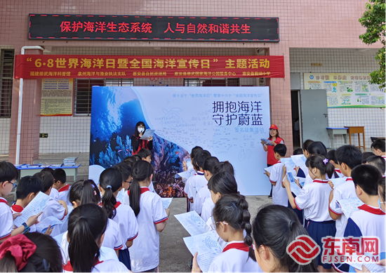 活动现场。泉州市海洋与渔业执法支队 供图 东南网6月9日讯(本网记者 施远圻 通讯员 李君华)6月8日是第十五个“世界海洋日”和第十六个“全国海洋宣传日”。当天,“保护海洋生态系统 人与自然和谐共生”海洋日宣传主题活动在惠安县前垵小学开展。 据了解,此次活动由泉州市海洋与渔业执法支队、福建崇武海洋科普馆、惠安县自然资源局、惠安县崇武国家海洋公园服务中心、惠安县前垵小学联合举办,旨在提升全民海洋意识,推动社会公众保护海洋生态,助力建设海洋强国。 活动现场,志愿者向学生讲解海洋知识,宣传保护海洋的意义和做法,分发海洋健康、赤潮灾害、水生野生动物保护等宣传手册和海洋主题科普图书,与学生互动并答疑解惑。随后,志愿者领读《拥抱海洋 守护蔚蓝》倡议书,倡导大家关心海洋、认识海洋、保护海洋,共同守护好我们赖以生存的“蓝色星球”。 泉州自古因海而生、因海而兴,是古代“海上丝绸之路”的重要起点,2021年“泉州:宋元中国的世界海洋商贸中心”列入世界遗产名录。优越的海洋资源禀赋、深厚的文化底蕴赋予了泉州充沛的经济活力和文化魅力,在开发利用的同时,保护海洋一直是社会各界关心关注的焦点。 近年来,泉州市海洋与渔业执法支队认真落实泉州市委、市政府工作部署,在市海洋与渔业局的指导下,强化对海域、海岛、海岸线的巡查执法,严厉打击非法用海、盗采海砂行为;完善渔港、渔船防污染设施设备配备,落实废油和生活垃圾回收制度;实施“最严格的伏季休渔制度”,动员钓具渔船自愿参加伏休,拆解处置涉渔“三无”船舶;加大双船底拖网、帆张网、三角虎网等对海洋渔业资源破坏性较大的作业方式渔船改造力度,清理取缔各类违禁渔具、网具,海洋保护改造取得了一定的成效。 下一步,泉州市海洋与渔业执法支队将进一步深化可持续发展观念,扛起责任担当,倡导、传播海洋生态文明理念,强化对违法违规行为的执法打击力度,共同守护水清滩净、鱼鸥翔集、人海和谐的泉州海洋环境。 |
