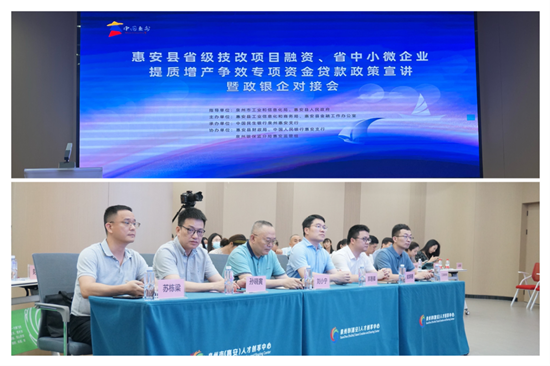 助力“惠企”万里行——民生银行泉州惠安支行承办惠安县政银企对接会 为进一步推动惠安县产业转型升级,鼓励企业增资扩产,提质增效,解决企业技改融资困难,6月16日,惠安县省级技改项目融资、省中小微企业提质增产争效专项资金贷款政策宣讲暨政银企对接会在泉州(惠安)人才创享中心举办。会议由惠安县工业信息化和商务局、惠安县金融工作办公室主办,惠安县财政局、中国人民银行惠安支行、泉州银保监分局惠安监管组协办,中国民生银行泉州惠安支行承办,18家银行及51家企业参加本次政银企对接会。