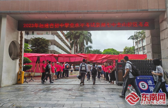 考生昂首阔步进考场。东南网记者 施远圻 摄 东南网6月24日讯(本网记者 施远圻)今天上午,2023年福建省初中学业水平考试(以下简称“中考”)正式开考,泉州市12万多名考生有序走入考场,迎接他们人生的重要一战。 “加油!你一定会考得很好。”“相信自己,没问题!”……在泉州七中(金山校区)考点门口,22名教师身穿红色上衣、面带笑容、排成两列,与前来参加考试的考生们逐个击掌,并给予鼓励,场面很是温馨。 “开考首日,我们学校行政以及初三年班主任特意穿上寓意好运、吉祥的红色上衣在校门口给考生们加油鼓劲,希望他们能从容应考、取得理想的成绩。”泉州七中教务处副主任、初三年段段长吴晓宁告诉记者。 |