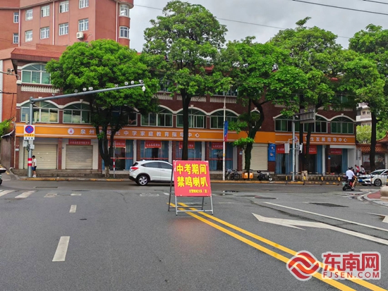 交警部门在考点周围设置“禁鸣喇叭”指示牌。东南网记者 施远圻 摄