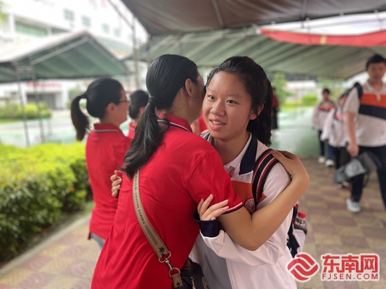 泉州九中老师与孩子拥抱。泉州九中 供图