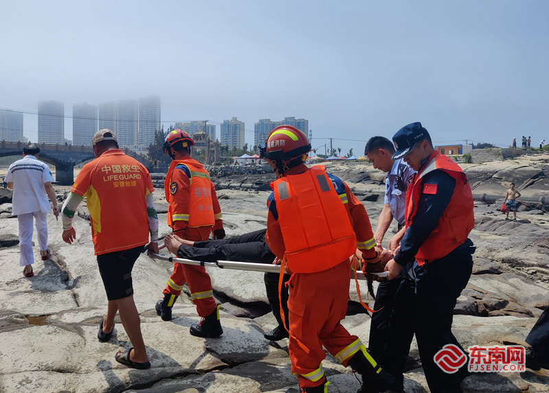 2023年6月2日,石狮市黄金海岸洛伽寺附近海域有一女子跳海轻生,泉州海警局石狮工作站联合驻地公安、消防和安迅应急救援队成功救助该女子。泉州海警局 供图