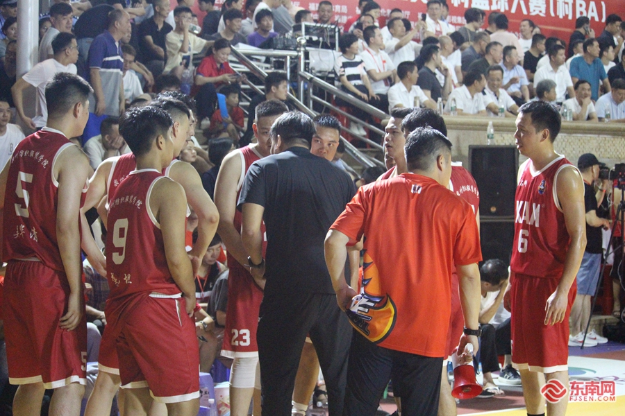 中场休息,宝盖队教练安排战术。东南网记者 薛逸群 摄