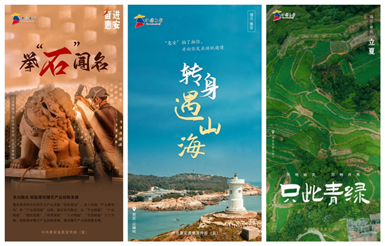 “学习贯彻党的二十大精神”主题宣讲活动走进惠女风情园 聚焦担当奋进。开设“争优争先争效·担当奋进”“争优争先争效·惠企安商”等专栏,广泛宣传惠安在营商环境、民营经济、项目奋战、民企服务、招商引资、城建提升等方面的工作成效、特色亮点、经验做法,系列刊发12名局长谈营商的相关报道,广泛传播惠安好政策、好举措和好做法,全力营造尊商亲商安商的浓厚氛围,持续擦亮“惠企安商”一流营商品牌。 聚焦典型塑造。开设“争优争先争效·先锋表率”专栏,系列宣传县委县政府表彰的3个集体记功单位和“敢于担当、奋发有为”30名先进个人典型事迹,陆续推出全县60名村(社区)“担当者”先进典型系列报道,鼓舞激励全县广大党员干部职工见贤思齐、踔厉奋发、比学赶超、争先奋进,以更加昂扬的斗志争优争先争效。 有特色有深度 精品宣传亮点频出 一张“小海报”,打开美丽“大视界”。据海报制作小组成员小吴介绍,海报文案创作主要结合当下热点,例如海报《举“石”闻名》,创作团队便用谐音的方式表达出这幅海报的内涵,体现惠安多元融合,赋能雕艺产业创新发展。 为干部鼓劲,为企业服务,为城市发展添彩。以“三争”为主题,惠安县委宣传部致力创新形式、创优内容、创深题材,策划推出凸显本土特色的新闻海报、视频、深度报道,让“争优争先争效”宣传品牌更响亮。