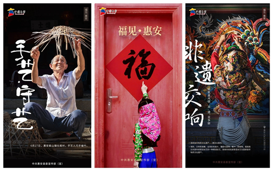 《看见惠安系列海报》获评2022全国地市新媒体百个优秀新闻栏目案例一等奖 创优内容。制作刊播《双招双引 聚商汇智》《拼争抢跑勇担当 比学赶超“开门红”》等系列短视频95个,多角度、立体化反映全县各项事业高质量发展的生动实践,展现出新时代惠安奋进形象。例如,短消息《惠安民警:我不放,你下我跟着你下》获福建新闻奖消息类三等奖;短纪录片《一露前行》《双向奔赴 科特情长》获泉州市广播电视艺术奖二、三等奖。 创深题材。开设“争优争先争效·匠心传承”专栏,通过宣传惠安女服饰技艺传承、石雕技艺传承、龙雀制茶工艺、惠安烙画等非遗代表性项目,进一步弘扬劳模精神、工匠精神,充分激励惠安人争优争先争效。扎实推进“每月一主题”宣传,充分挖掘本地最具特色、最有价值的传播资源开展专题策划采写,其中《惠安:打造教育慈善新标杆》等获得中央、省、市媒体的广泛关注报道,取得了良好的宣传效果。 拓广度聚合力 对外宣传出新出彩 刺桐花开放,惠安浪涌来。4月21日,2023年“宋元中国·海丝泉州”海洋文化年启动仪式暨城市品牌标识发布活动在惠安县崇武古城风景区举行。10多家中央省市主流媒体聚焦惠安,关注惠安深耕海洋文化,打造枕浪听涛的诗意生活。