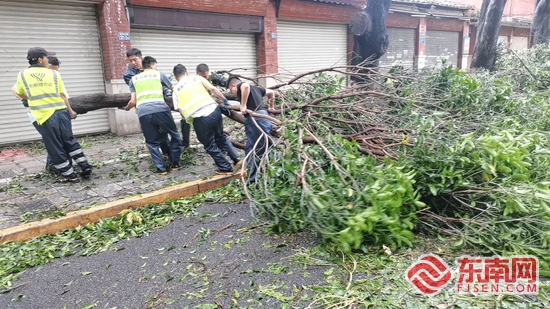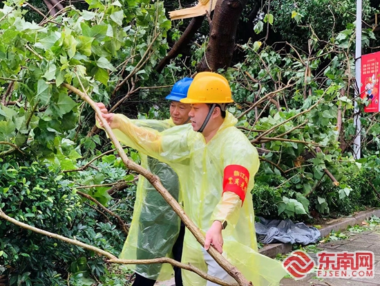 临江街道党员志愿先锋队及时清理倒伏树木。鲤城区融媒体中心 供图